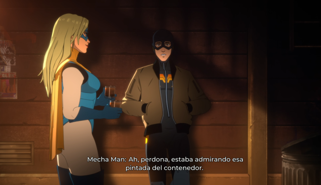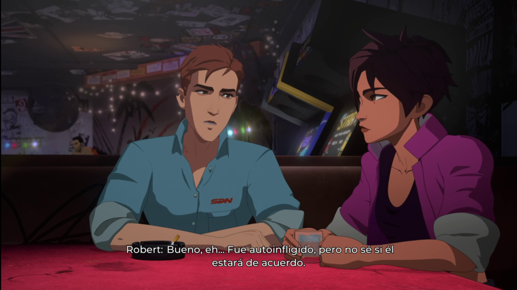 Cada uno le da mucha vida a sus personajes y le agrega mucho a todos los diálogos, con varios de estos genuinamente quedándose incrustados en mi cabeza. Aaron Paul como Robert no solo me sorprendió que fuera casteado en un juego como este, también me gustó mucho la forma en que pone al personaje como alguien aterrizado en la tierra, pero que notas el resentimiento que tiene, lo cual funciona como paralelo a Laura Bailey como Invisigal, alguien que también ha sufrido mucho, pero se nota que todavía no logra seguir adelante.